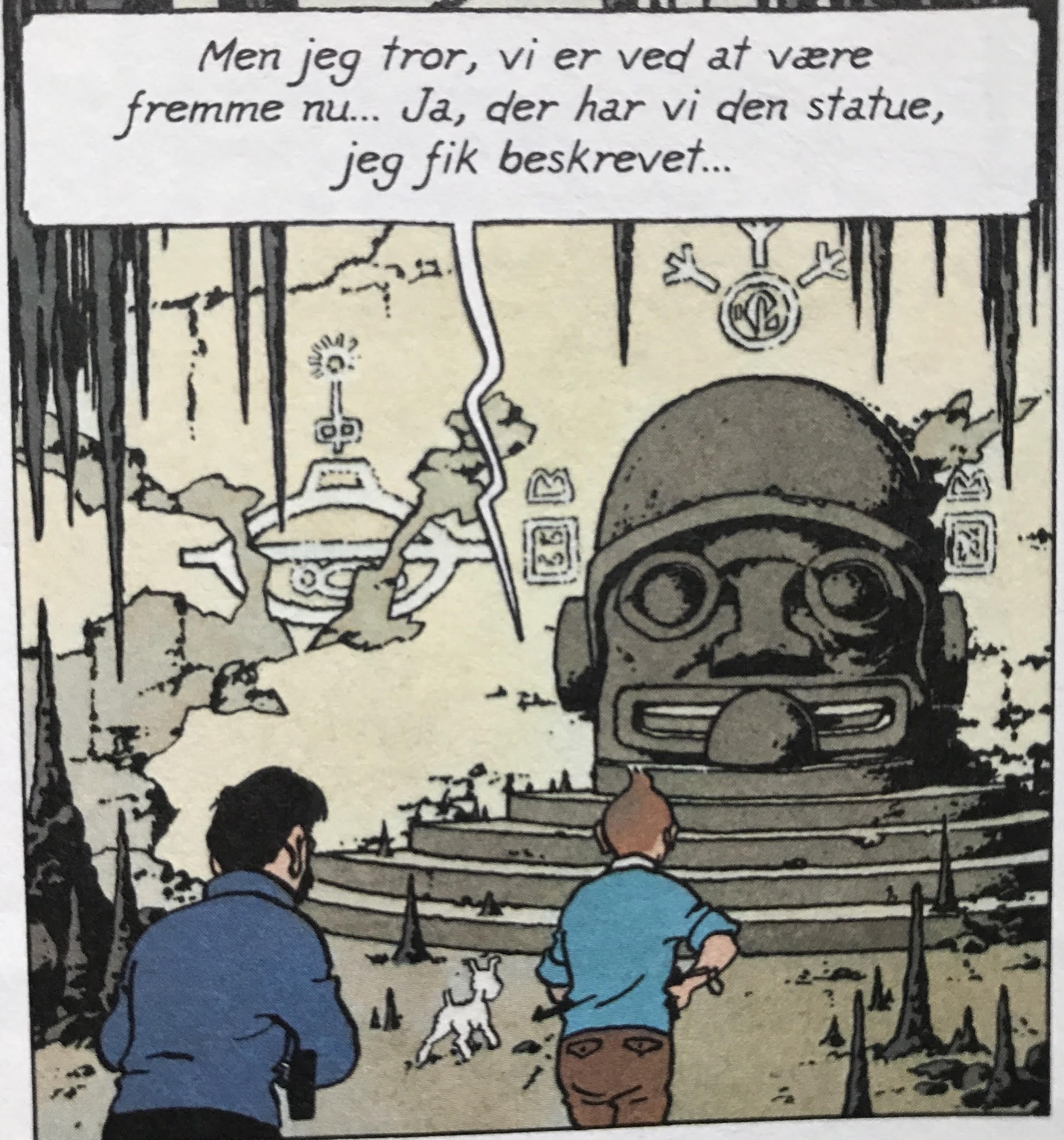 Historien er ikke blot klassisk Tintin, men også klassisk UFO-fantasi, byggende på en blanding af UFO-rapporter og Erich von Däniken, som blev kendt for at postulere, at der findes allehånde arkæologiske spor efter besøg af rumvæsener helt tilbage til forhistorisk tid. Som sådan er historien god underholdning og endnu et eksempel på de flyvende tallerkners store appel til menneskelig forestillingskraft. Og som sådan ville jeg indtil for ganske nyligt blot have læst den.
